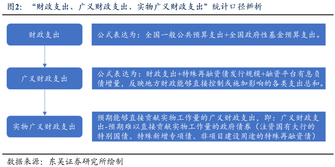 如果在“广义财政支出”基础上,剔除预计难以直接贡献实物工作量的部分,那么我们预计2026年能够直接贡献实物工作量的财政及城投支出(简称“实物广义财政支出”)有望实现41.62万亿元,同比增长2.1%,该增速高于2026年“广义财政支出”增速约0.2个百分点,主要由于受2025年安排用于注资国有大行的特别国债、特殊新增专项债、非项目建设用途的特殊再融资债“高基数”影响,2026年“非实物广义财政支出”的同比增量预计将由上年对应的超过1.5万亿元下降至不足300亿元。